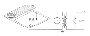 絕緣膠墊試驗接線如圖4所示。試驗時先將絕緣膠墊上下鋪上濕布或金屬箔,并應比被測絕緣膠墊四周小200mm,連續(xù)均勻升壓至表8規(guī)定的電壓值,保持1min,觀察有無擊穿現(xiàn)象,若無擊穿,則試驗通過。試樣分段試驗時,兩段試驗邊緣要重合。