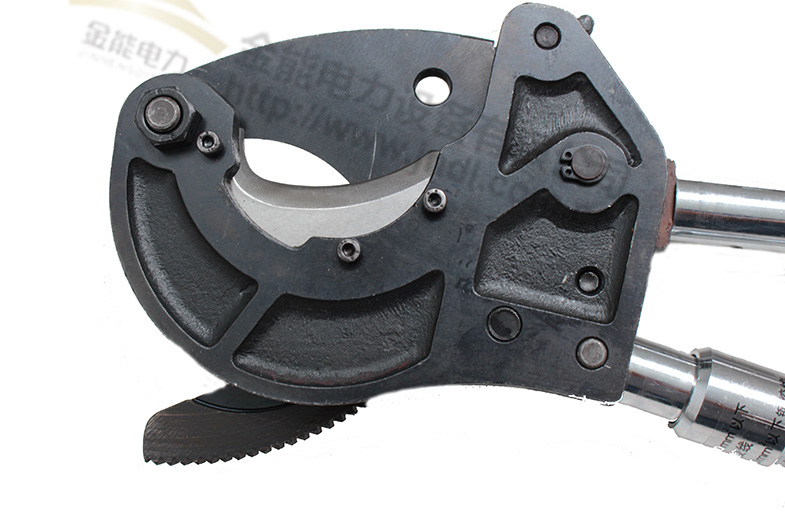 3,按照步驟2方法,打開動刀片,卡住電纜侯,合上動刀片,連續(xù)往復(fù)抬壓動手柄,直至電纜剪斷,