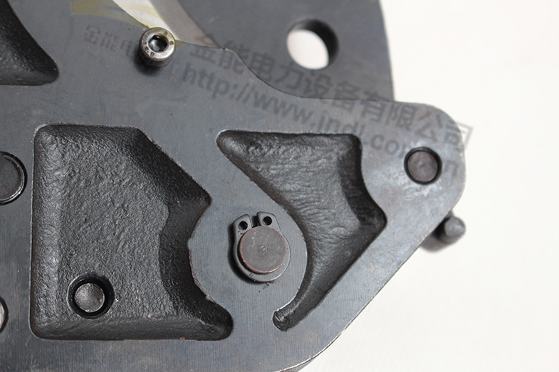 2,將動手柄想下壓與止退扭碰撞,脫開內(nèi)部各鎖緊機構(gòu),使動刀片開合自如。